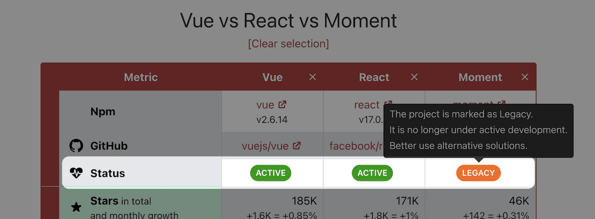 Users asked for an indication to identify libraries that are no longer active or have been deprecated.