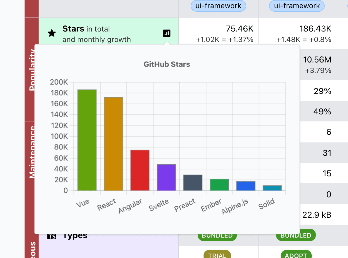 In the future, I plan to include GitHub Stars and Npm Downloads numbers, and libraries statuses to improve the sorting algorithm.