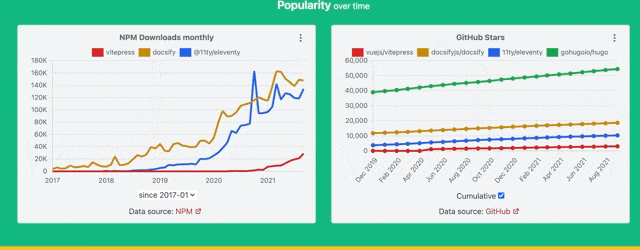 Even though the charts are organized into categories (“Popularity”, “Maintenance”, and “Miscellaneous”), it does little help to mobile users - the category title slides out the viewport when scrolling to a second-third chart in the category.