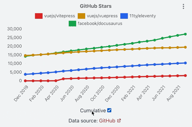 I wanted to add a similar control to the “Contributors” chart but turned out that it’s not that simple. After a prolonged conversation with GitHub Support, I realized that the API I use doesn’t suit the cumulative version of the chart. The proper implementation seems a bit complex. So I decided to put the implementation of this idea on hold.