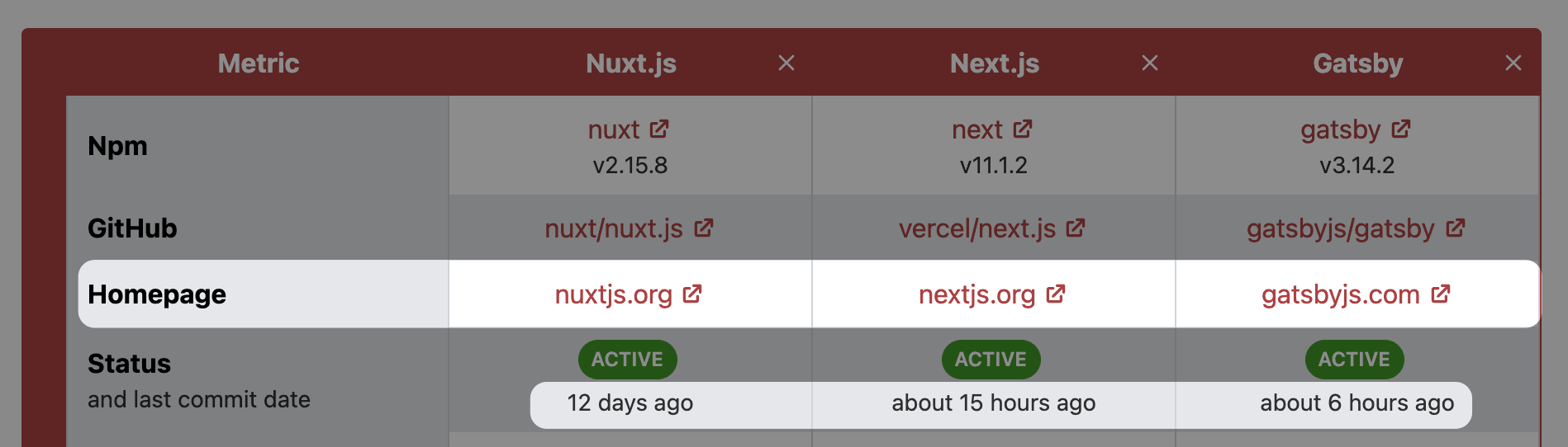 Library Homepage link and Last Commit date