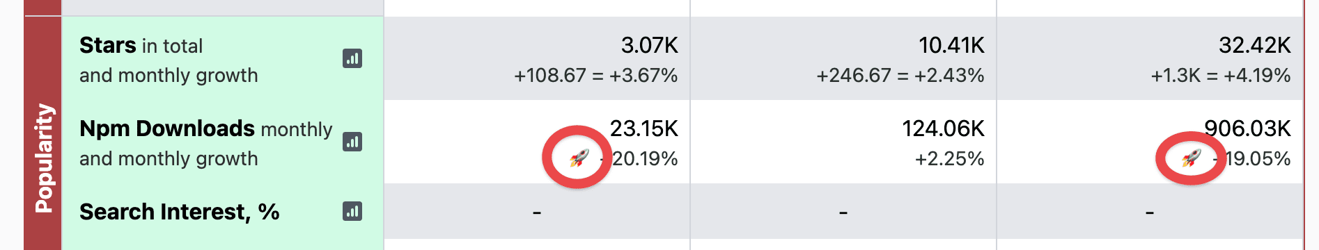 I started to use another signifier, a rocket symbol 🚀, to draw attention to trendy libraries.