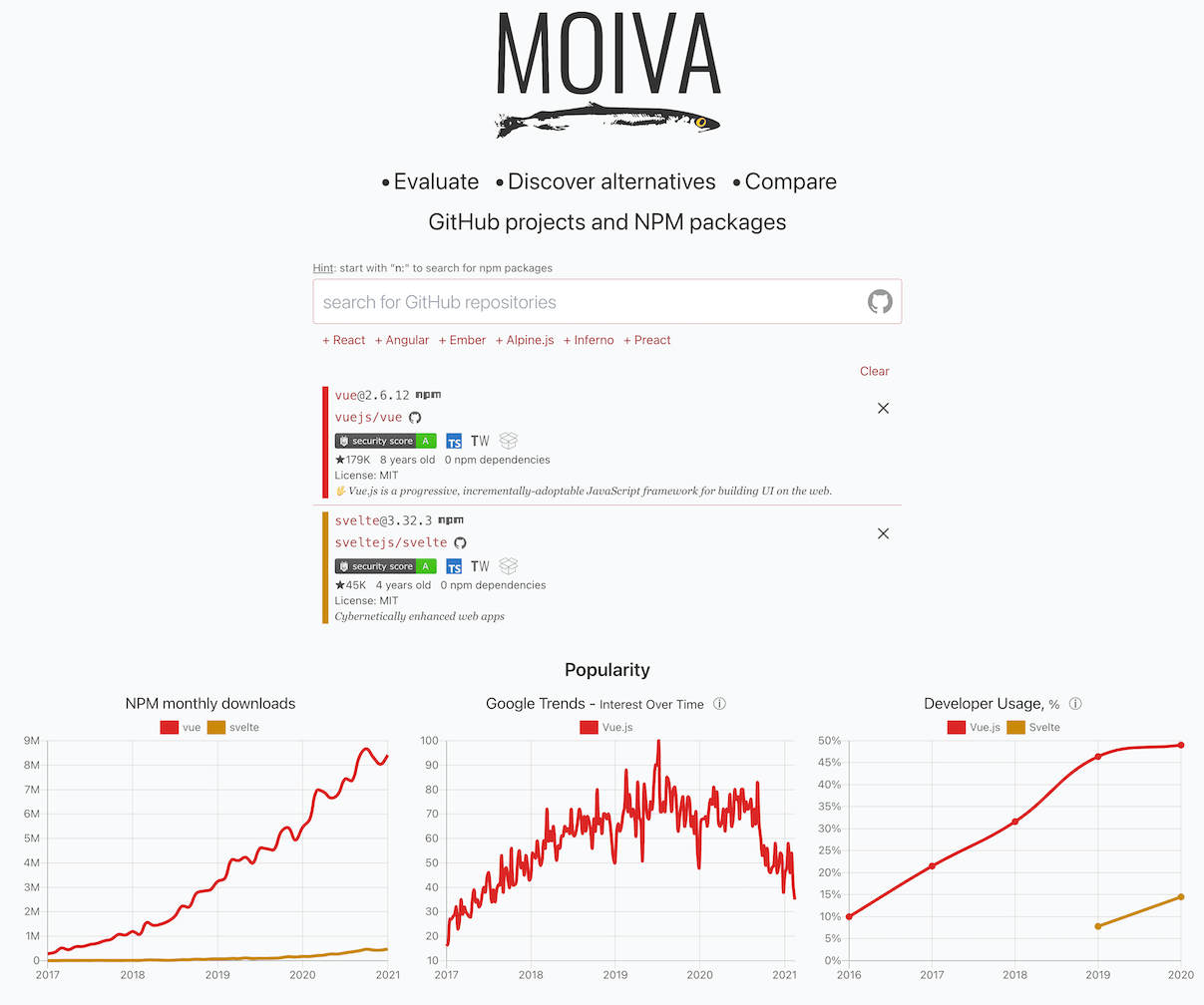 On the other hand, if Moiva gets opened up to the search, evaluation and comparison of any GitHub project, it will essentially convert Moiva into a universal tool and make it useful to many more developers.